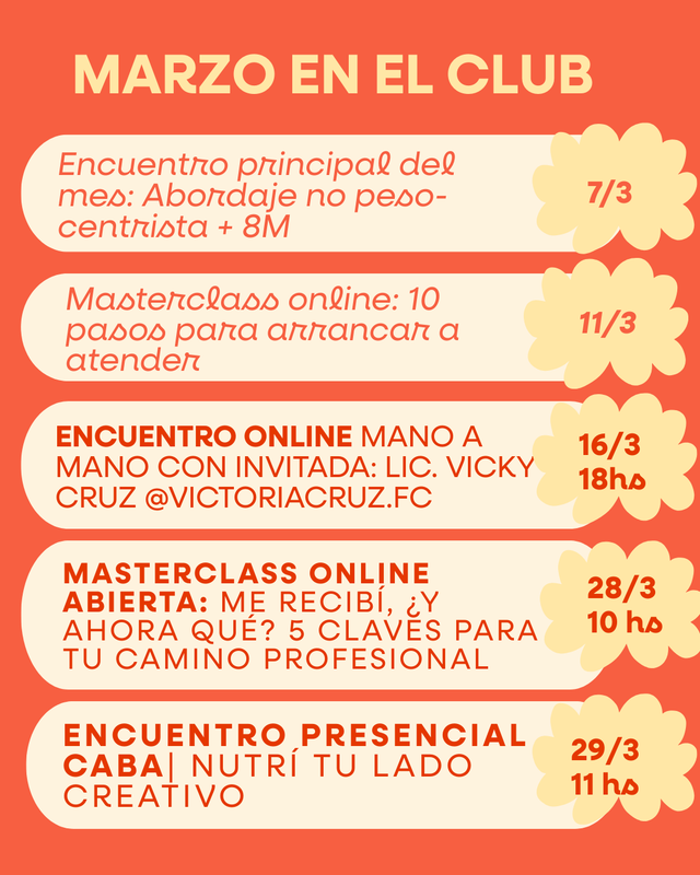 Incluye 2 encuentros por mes, eventos con invitadas, formaciones y comunidad de apoyo entre colegas.Inscribite abaj