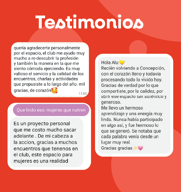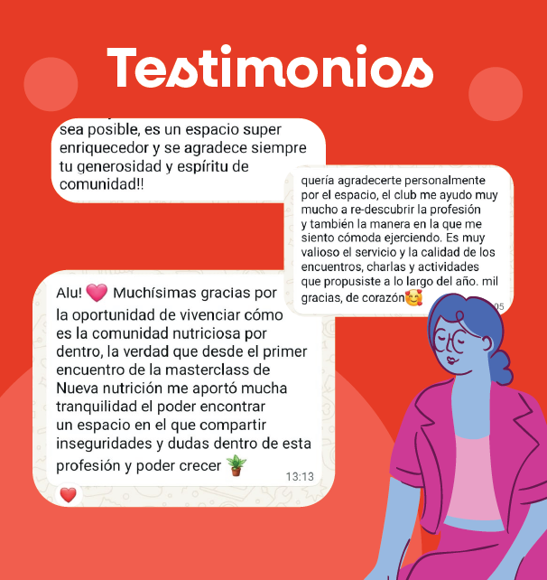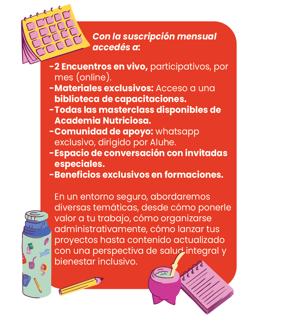 El club esta creaneado y dirigido por Aluhe (directora de Nutriciosa), a quien le apasiona hacer red entre nutricionistas e impulsarlas a crecer profesionalmente.